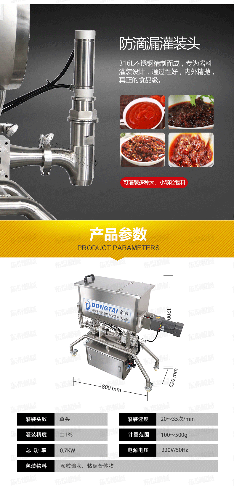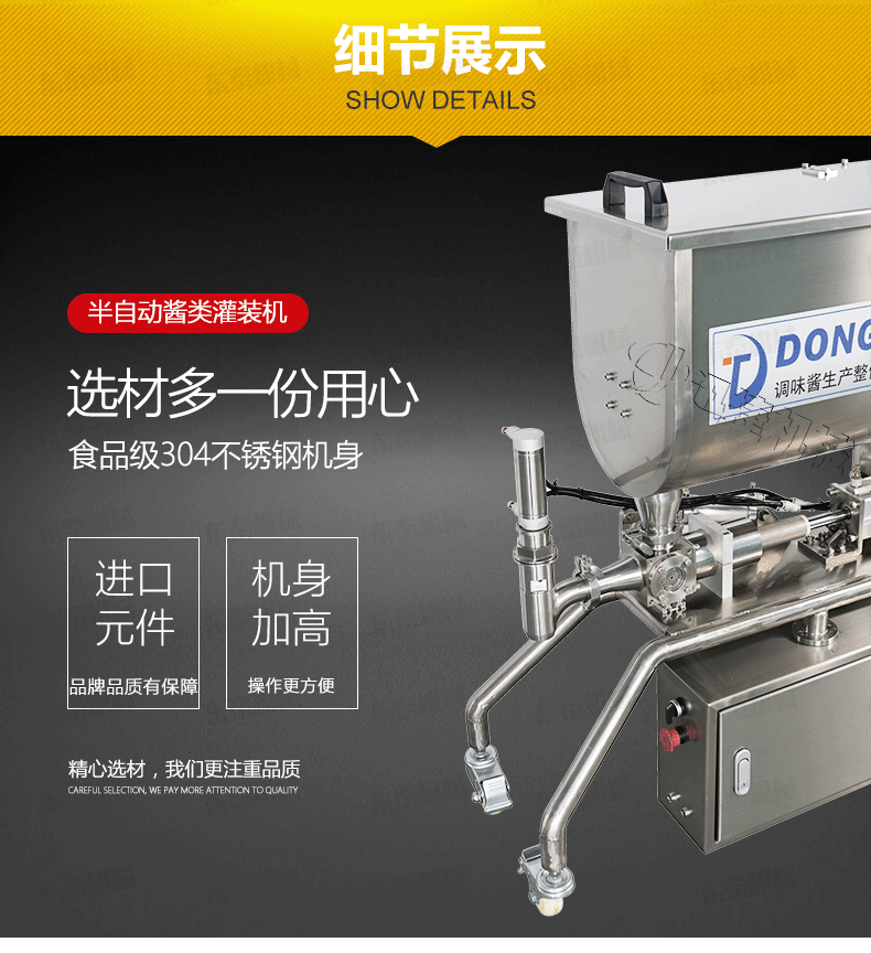 2、 醬料灌裝機設備全不銹鋼制作,衛(wèi)生、安全;